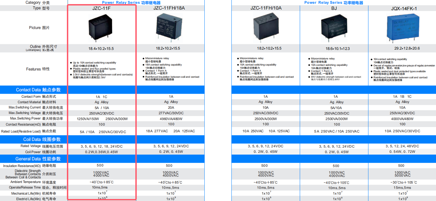 功率继电器 JZC-11F