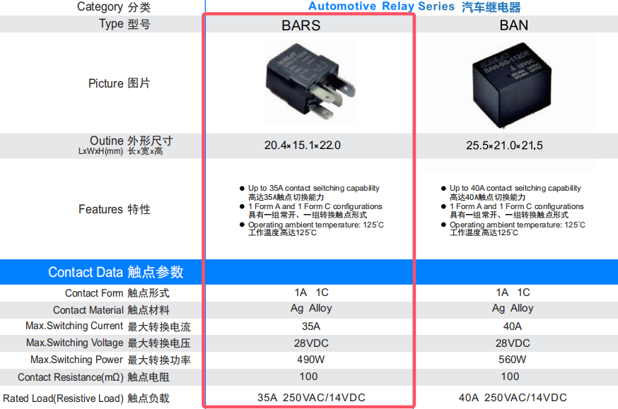 汽车继电器 BARS